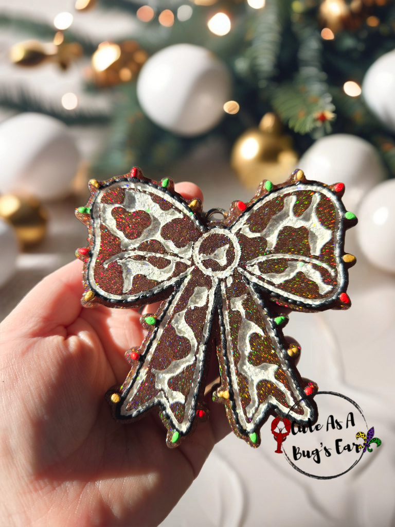 Christmas Cow Print Bow freshie. Can do in any colors upon request. Picture shown with glitter.