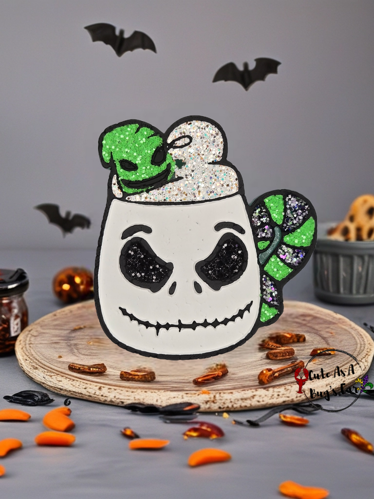 Nightmare Halloween Mug freshie. Can do in any colors upon request. Can do without glitter. Pictures shown with regular and glow in the dark glitter.